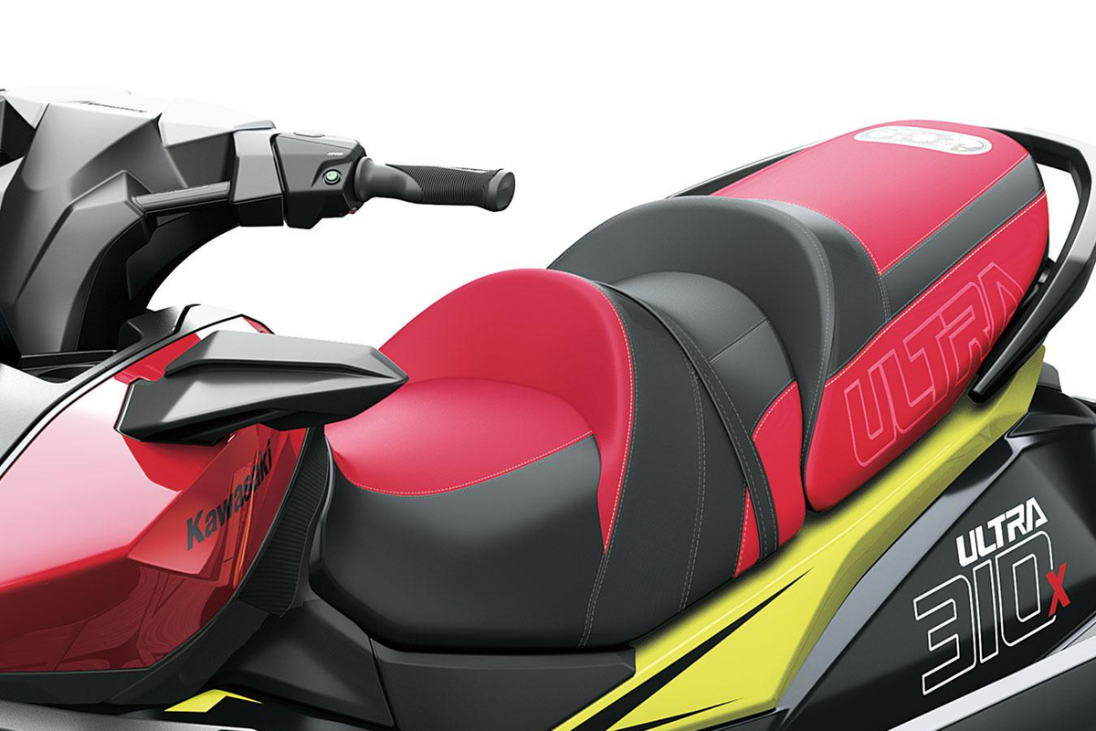 O assento de duas peças para três pessoas foi redesenhado com foco em ergonomia e controle. A parte frontal está 80 mm mais fina na área dos joelhos, facilitando a pilotagem em pé e aumentando a liberdade de movimento. O resultado é uma experiência mais natural, segura e confortável, mesmo em longos períodos de navegação.