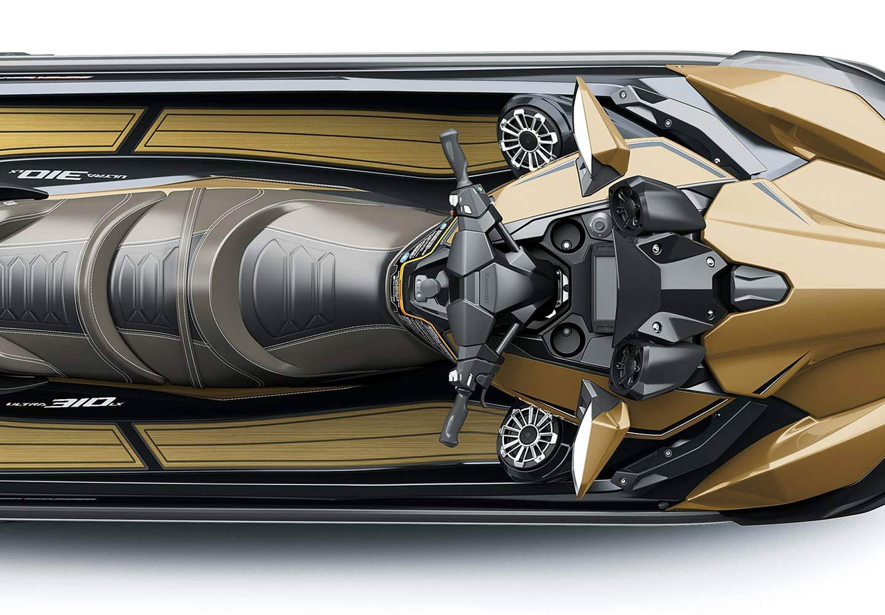 Combinando os principais modelos de Jet Ski da Kawasaki, a nova Série ULTRA 310 incorpora uma linha de equipamentos que ampliam conforto e conveniência. O compartimento de armazenamento de fácil acesso, a câmera de ré e o sistema de som com quatro alto-falantes elevam a experiência de pilotagem a um novo patamar de inovação.